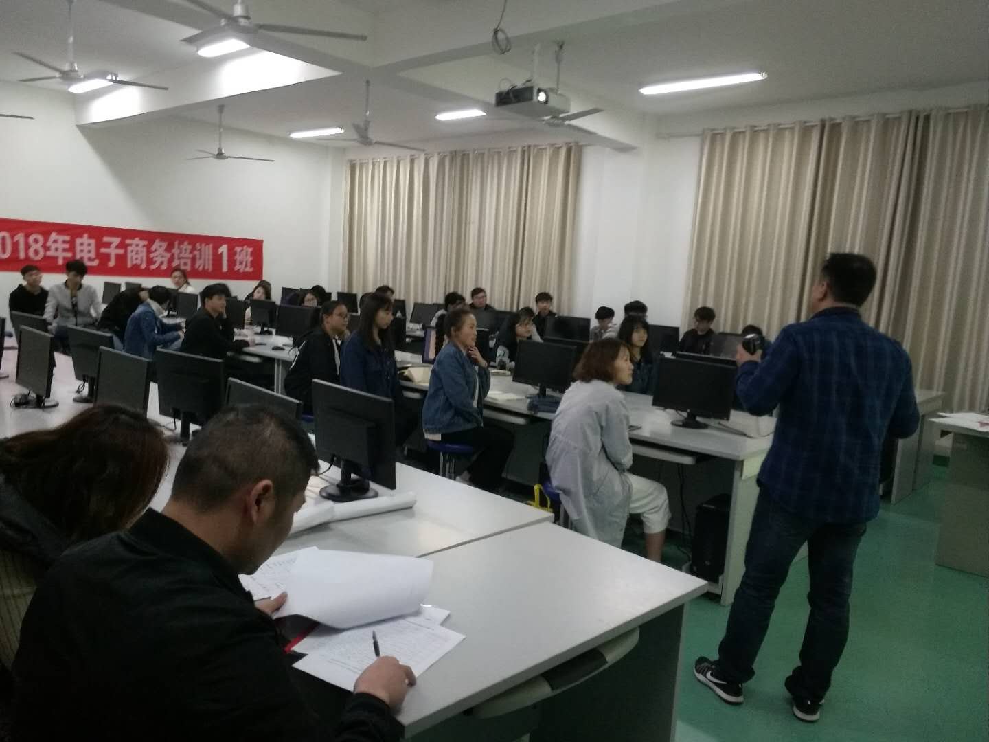 隨后又參觀了培訓(xùn)基地的另外一授課區(qū)域——電子商務(wù)教學(xué),胡主任高度肯定了我校為響應(yīng)大眾創(chuàng)業(yè)、萬眾創(chuàng)新號(hào)召所付出的努力。